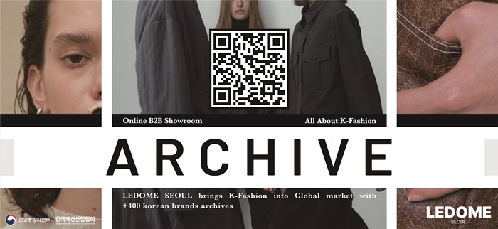 르돔 온라인 아카이브(https://www.ledome-showroom.com)는 K-패션 브랜드와 국내외 바이어를 연결하는 B2B 플랫폼으로 400개 이상의 K-패션 브랜드가 입점되어 있다.