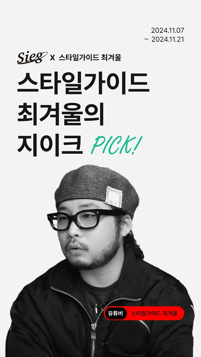 신원 남성복 브랜드 ‘지이크(SIEG)’가 패션 유튜버 ‘스타일가이드 최겨울’과 함께 협업 콘텐츠를 공개하고 이를 기념한 특별 기획전을 진행한다.