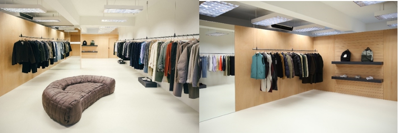 특히 이번 스토어 오픈을 기념하여 연진영 작가와의 협업을 통해 다운 자켓을 해체해 리사이클링한 다운 소파 (작품명: puffer pupa)를 배치해 공간에 독창적인 개성을 더했다.