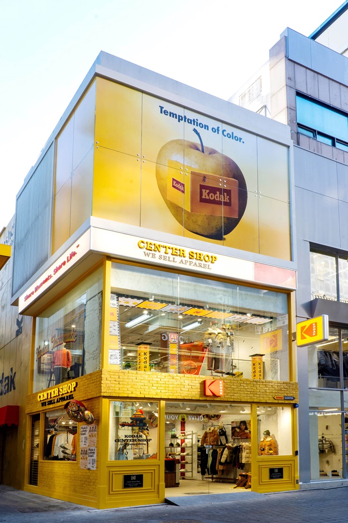 ‘코닥 센터샵’은 총 2층 규모로, 130여년 코닥(Kodak) 헤리티지에 기반한 브랜드 정체성을 매장 내외관에 밀도 있게 담았다. 외관은 코닥의 상징인 옐로우 컬러에 해외에서 볼 수 있는 빈티지 샵 감성으로 연출했고 내부는 코닥 아카이브 카메라와 필름을 비롯한 미국 등 각지에서 공수한 빈티지 소품을 활용해 매장에 들어선 순간 코닥만의 감성에 몰입할 수 있도록 했다.
