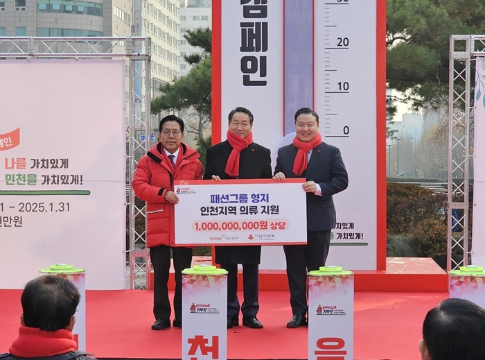 패션그룹형지(부회장 최준호)가 지난 2일 인천사회복지공동모금회 주최로 열린 ‘희망2025나눔캠페인’ 출범식에 참여해 10억원 상당의 의류를 기부했다.