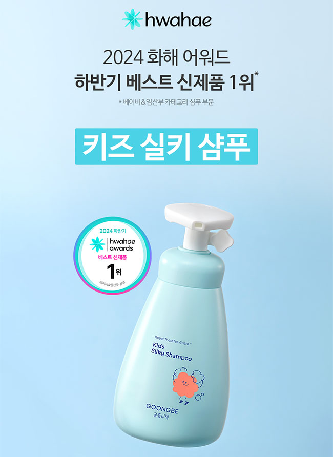 ◆궁중비책 키즈 실키 샴푸가 2024 화해 어워드 하반기 베스트 신제품 1위 및 뷰티 어워드 2위 수상했다.