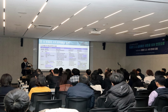 이번 행사는 트럼프 2기 출범과 맞물려 최근 글로벌 통상환경 변화가 우리 산업에 미칠 영향을 진단하고, 각계 전문가들의 견해를 통해 섬유패션업계가 취할 전략적 대응 방안과 미래 지향적 방향성을 모색하기 위해 마련됐다.