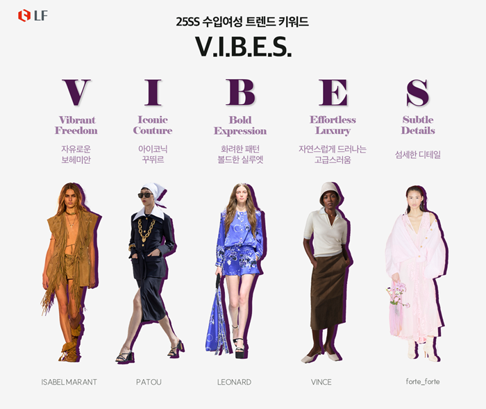 생활문화기업 LF가 2025 SS 시즌 수입 여성 브랜드의 패션 트렌드를 아우르는 키워드로 ‘바이브(VIBES)’를 선정했다.