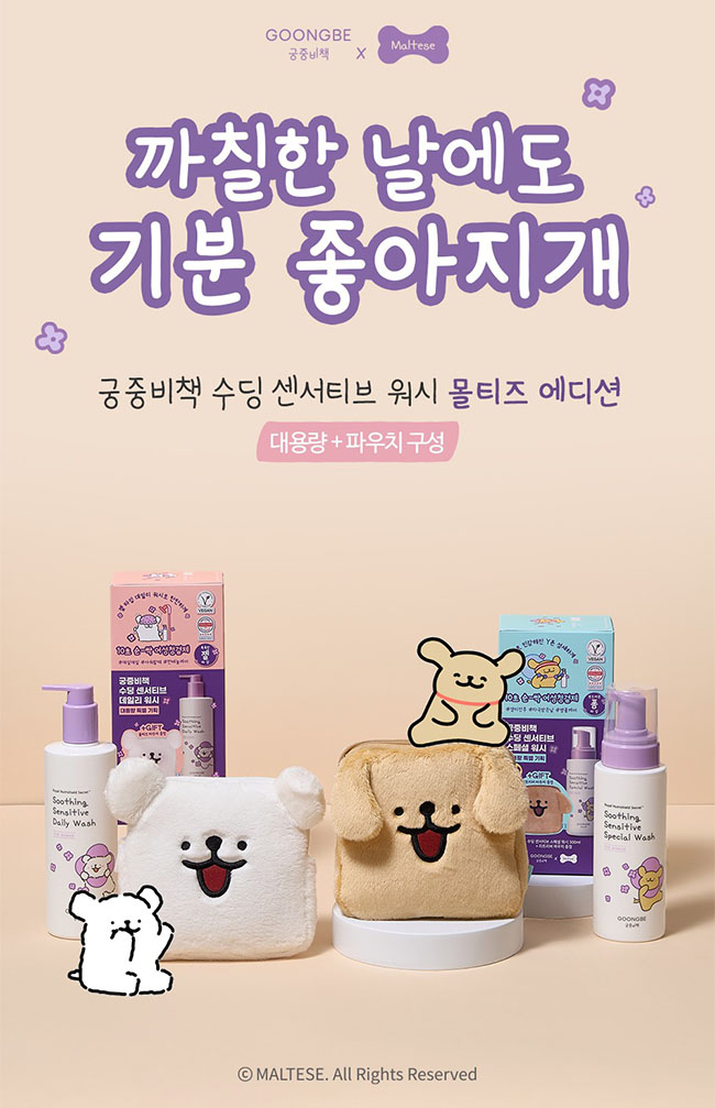 올리브영 ‘올영픽’은 MD가 직접 선정하는 이달의 인기 브랜드 큐레이션 프로그램이다. 궁중비책은 오는 3월 1일부터 7일까지 진행되는 올영픽 프로모션 기간 동안 몰티즈 캐릭터 파우치가 함께 제공되는 ‘수딩 센서티브 워시 몰티즈 에디션’ 기획 세트를 17,770원의 특별 할인가에 제공한다. 또한 3월 3일 단 하루만 진행하는 ‘오늘의 특가’ 행사에서는 32% 할인된 16,830원에 만나볼 수 있다. 해당 프로모션 제품은 전국 올리브영 1,000여 개 매장에서 구매 가능하다.