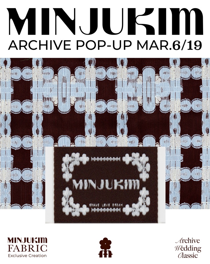 ‘민주킴 아카이브(MINJUKIM Archive)’를 타이틀로 한 팝업스토어에는 아카이브 패브릭으로 만든 새로운 백 컬렉션을 처음으로 공개하는 자리다. 또한 다양한 레이어드 스타일을 연출할 수 있는 에이프런 드레스도 재출시해 선보이며, 웨딩 라인 아이템도 일부 만날 수 있다.