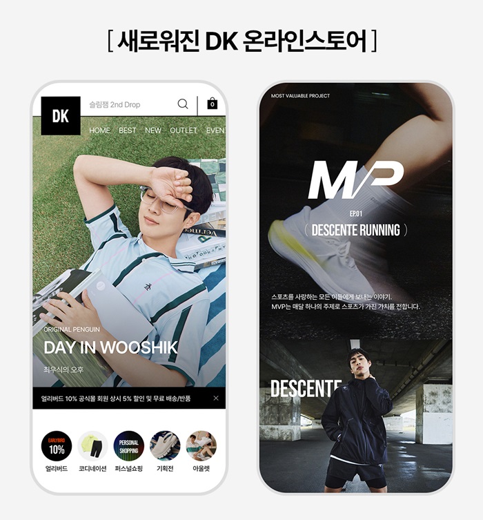 새롭게 개편된 온라인몰에서는 러닝, 축구, 골프, 우먼스, 신발로 구분된 5가지 테마별 큐레이션관인 ▲DK THEME와 매월 하나의 테마를 하아라이팅하여 보여주는 ▲MVP(Most Valuable Project) 관을 신규로 선보인다. 이를 통해 브랜드 고유의 스포츠 헤리티지를 반영한 차별화된 콘텐츠를 제공하며, 핵심 상품의 브랜딩을 강화해 경쟁력을 높인다는 전략이다.