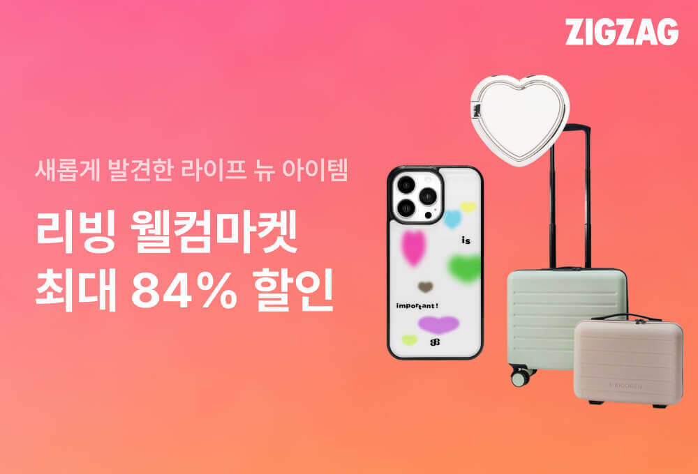 ‘리빙 웰컴마켓’은 지그재그가 매월 운영하는 라이프 카테고리 전용 정기 프로모션이다. 라이프 카테고리의 신규 입점 브랜드 및 기입점 브랜드의 신상품을 한데 모아 다양한 혜택과 함께 선보이는 형태다. 디지털 액세서리, 여행용품, 문구/취미, 주방, 홈데코, 생활용품 등 지그재그에 입점한 다양한 분야의 라이프 브랜드를 알리기 위해 마련했다. 지난해 하반기부터 운영하던 ‘딩동/새로 왔어요’ 프로모션을 올해 2월 ‘리빙 웰컴마켓’으로 리뉴얼해 오픈했다.