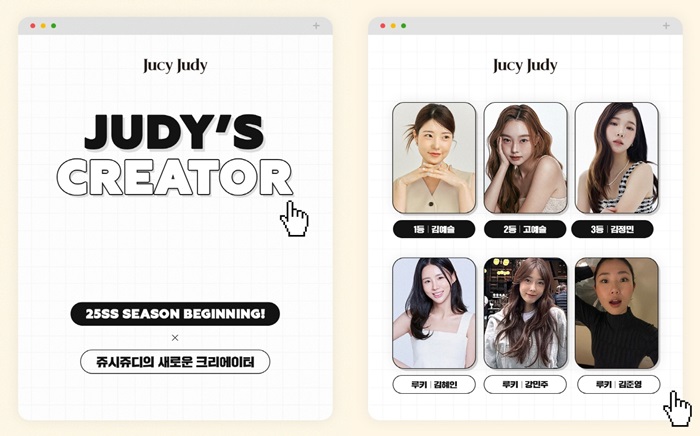 지난 1월 모집을 시작한 ‘쥬시쥬디 크리에이터’는 패션과 트렌드에 관심이 많고 쇼호스트, 콘텐츠 크리에이터로 성장하고자 하는 지원자를 선발했다. 이들은 3월 말부터 9월까지 약 6개월 간 브랜드 모델을 비롯해 콘텐츠 제작, 라이브 방송 출연 등 활동에 참여한다.