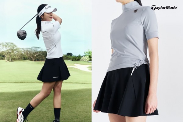 변덕스러운 날씨를 대비한 이른 여름 시즌 제품도 추천했다. ‘하이넥 5부소매 티셔츠’는 좌측 둥근 트임이 포인트로, 내장된 스트링을 조절해 다양한 스타일링이 가능하다. 스윙 시 불필요한 부분은 과감한 컷아웃 디자인으로 표현해 냈으며 동작에 방해가 안 가도록 디테일한 포인트까지 신경 썼다. 또한, 풀달(FULL DULL) 소재를 사용해 광택을 낮춰 매트한 느낌과 함께 부드럽고 세련된 외관을 제공한다.
