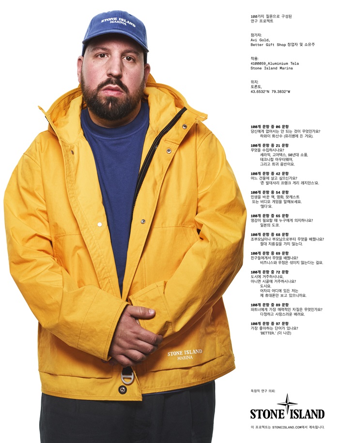 컬렉션의 일환으로 공개된 새로운 캠페인에선 Avi Gold 가 선명한 옐로우 색상의 알류미늄 텔라 자켓을 착용했다. 해당 후드 자켓은 퓨어 코튼 포플린 소재에 라미테이팅 처리한 알루미늄 포일을 더해 뛰어난 단열 기능과 내후성을 갖춘 후드 자켓으로, 돛의 바삭한 촉감을 연상시키는 디테일이 더해진 것이 특징이다.