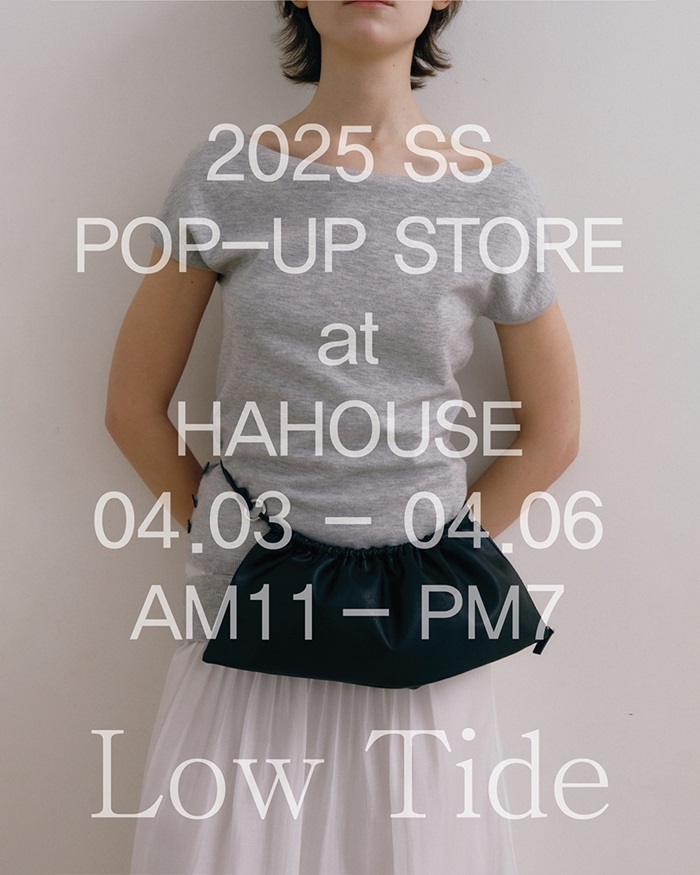 여성 컨템포러리 브랜드 ‘로우타이드(LOW TIDE)’가 2025 S/S 시즌 컬렉션 ‘Dear. Agnes Martin (디어 아그네스 마틴)’의 공개를 기념하며, 오는 4월 3일부터 6일까지 서울 용산구 한남동 하하우스(HA HOUSE) 2층에서 팝업스토어를 진행한다.