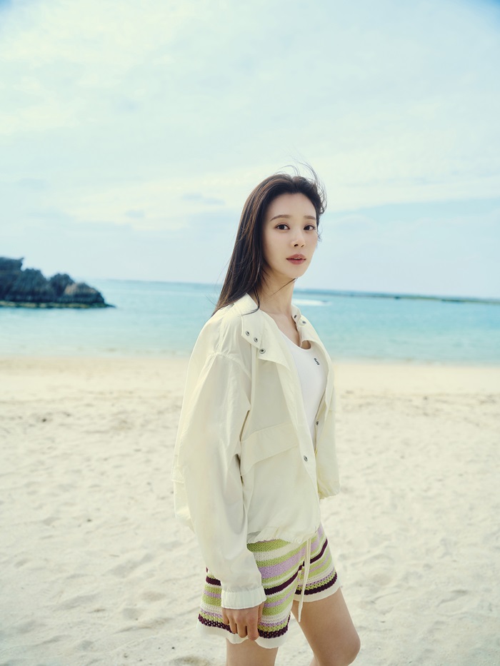 이주빈은 오키나와의 해변을 배경으로 세련된 점퍼 스타일링을 선보이는가 하면, 청량한 컬러의 니트 탑과 가디건 셋업에 데님 팬츠를 매치해 여름 캐주얼룩의 정석을 보여주었다.
