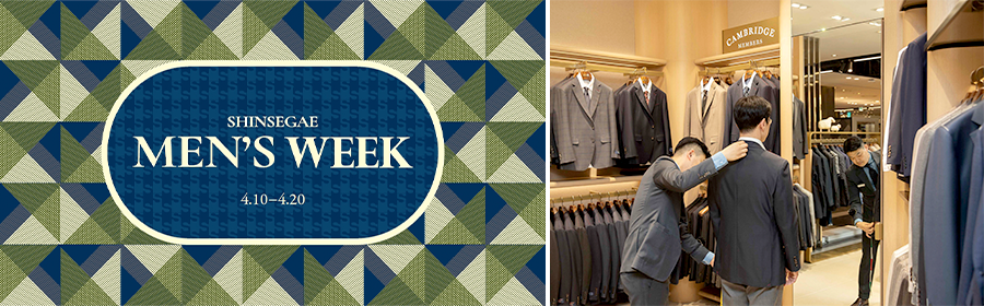 신세계백화점이 오는 20일(일)까지 남성 고객들을 위한 ‘멘즈위크(Men`s Week)’를 진행한다. (4/10~20, 전점)