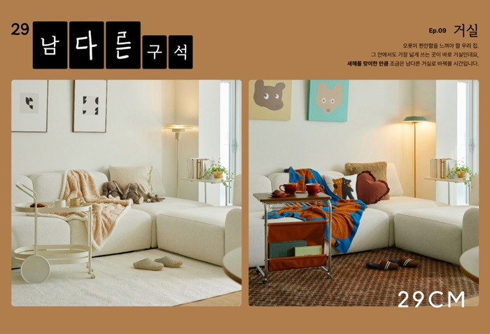 29CM는 올해부터 라이프스타일 카테고리 강화를 본격화하며 관련 콘텐츠 발행 수도 전년 대비 50% 이상 늘렸다. 올해 초 유튜브 채널 ‘29오픈하우스’를 개설하고 취향이 뚜렷한 라이프 세터(Life-setter)들의 소비 취향을 볼 수 있는 신규 프로그램 ‘잘사나보세’ 시리즈를 공개했다. 평소 감각있는 라이프스타일로 주목받는 크리에이터와 셀럽이 29CM에서 고른 홈 아이템으로 인테리어를 꾸미는 과정을 담아 시청자의 관심과 흥미를 높였다. 실제 구매자의 상품 후기를 바탕으로 체험 영상을 구성한 숏폼 콘텐츠 ‘이(2)걸로 구(9)매해’도 상품 구매의 신뢰를 높이는 콘텐츠로 주목받고 있다.