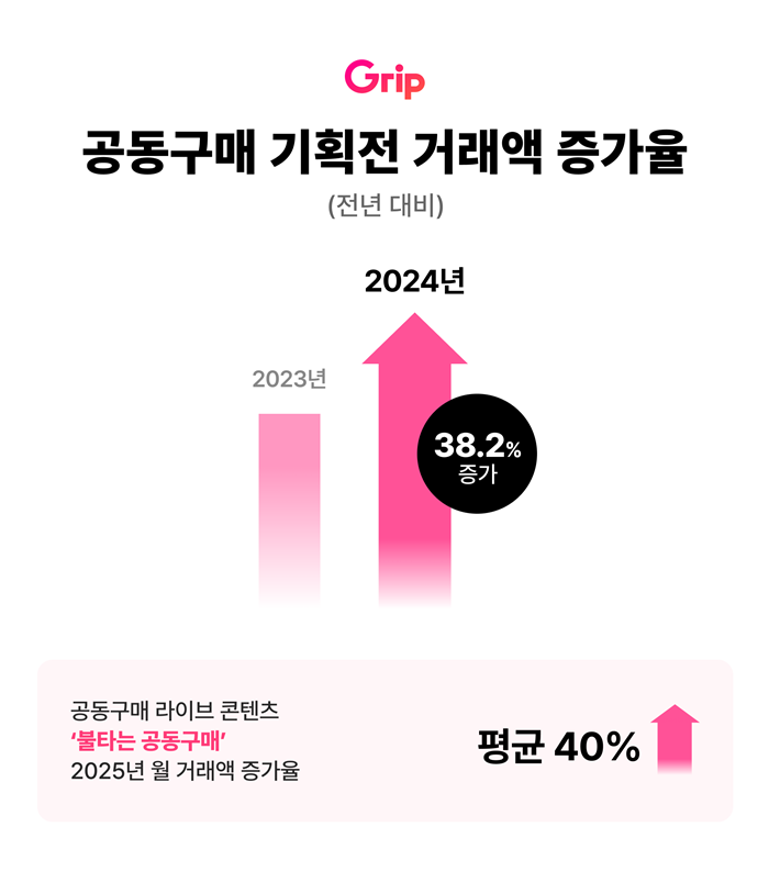 그립은 2021년 5월 업계 최초로 공동구매 라이브를 선보인 것을 시작으로, 2022년 8월부터는 고객들의 지속적인 요청에 따라 공동구매 기획전을 정기적으로 운영해 오고 있다. 기획전 도입 이후 거래 규모는 꾸준히 증가해, 지난해 공동구매 기획전 거래액은 49억3,103만원으로 전년도 35억6,839만원보다 38.2% 늘었다.