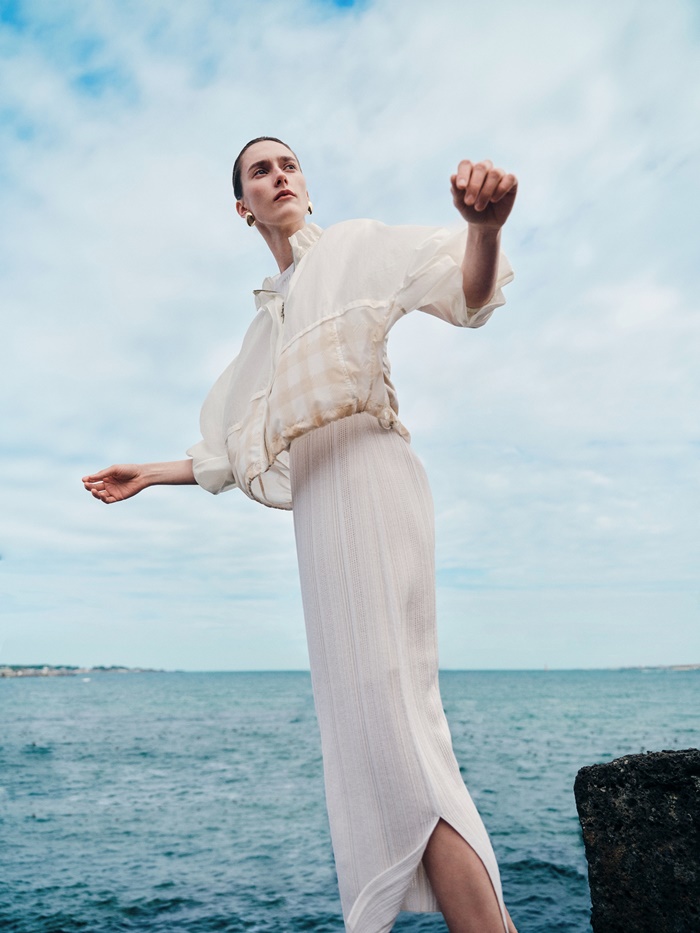 이에 더해, 닥스의 시그니처 하우스체크 패턴을 변형해 적용하거나 니트 투명사 디테일을 더해 우아한 디자인을 완성했다. 또한, 가볍게 흩날리는 소재에 자연스러운 셔링과 허리 스트링을 더해 실루엣에 볼륨감을 주며 여성스러운 무드를 강조했다.
