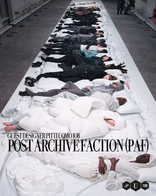 이번 행사에 게스트 디자이너(Guest Designer)로 초청된 포스트아카이브팩션은 한국 디자이너로는 준지(Juun.J)에 이어 두 번째로 피티 우오모의 공식 초청을 받았다. 포스트 아카이브 팩션은 오는 6월 19일, 피렌체의 레오폴다 기차역(Stazione Leopolda)에서 전 세계 바이어 및 프레스를 대상으로 브랜드의 실험적 미학과 철학을 담은 패션쇼를 선보일 예정이다.