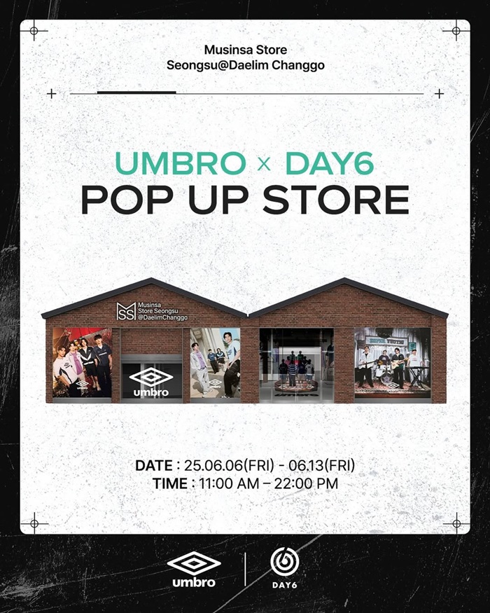 영국 정통 스포츠 브랜드 ‘엄브로(UMBRO)’가 브랜드 엠버서더인 4인조 남성 밴드 DAY6(데이식스)와의 협업을 기념해 성수동에서 팝업스토어를 운영한다.