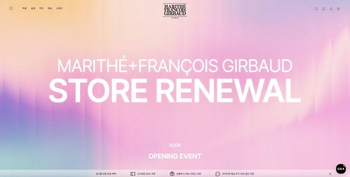 레이어(대표 신찬호)에서 전개하는 프렌치 캐주얼 브랜드 ‘마리떼 프랑소와 저버(MARITHÉ+FRANҪOIS GIRBAUD)’가 공식 온라인 스토어 리뉴얼 오픈을 기념해 새로워진 쇼핑 환경과 차별화된 브랜드 경험을 제공하는 특별 프로모션을 진행한다.