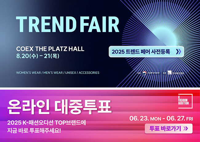‘K-패션오디션 대중 온라인 투표( kfashionvote.com) 및 트렌드페어 참관 신청(trendfair.org)은 공식 홈페이지를 통해 가능하며, 패션·뷰티·F&B 등 라이프스타일 전반의 바이어 및 관계자를 대상으로 한 사전 등록은 8월 19일까지 선착순 접수할 예정이다.