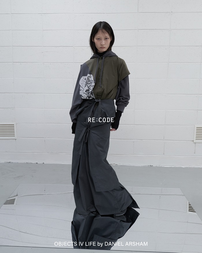 Objects IV Life(오브젝트 포 라이프)는 현대미술 작가 다니엘 아샴이 론칭한 브랜드로, 현대 문명과 고고학을 결합한 조형적인 디자인이 특징이다. 재고 원단과 재활용 소재, 천연 섬유 등을 활용하여 워크웨어 스타일의 의류를 제작해왔으며, 자원 순환 방식을 통해 지속가능한 가치를 추구하는 래코드와 결을 같이한다. 남은 자원을 활용해 새 가치를 만들어낸다는 점에서 협업이 진행됐다.