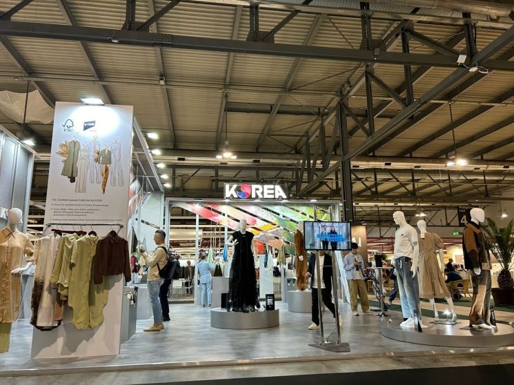 KOTRA는 7월 8일부터 10일까지 3일간 이탈리아 밀라노에서 개최된 ‘2025 밀라노 우니카 추계 섬유 전시회’에서 한국관을 운영했다. 사진은 전시회장 내 한국관 모습