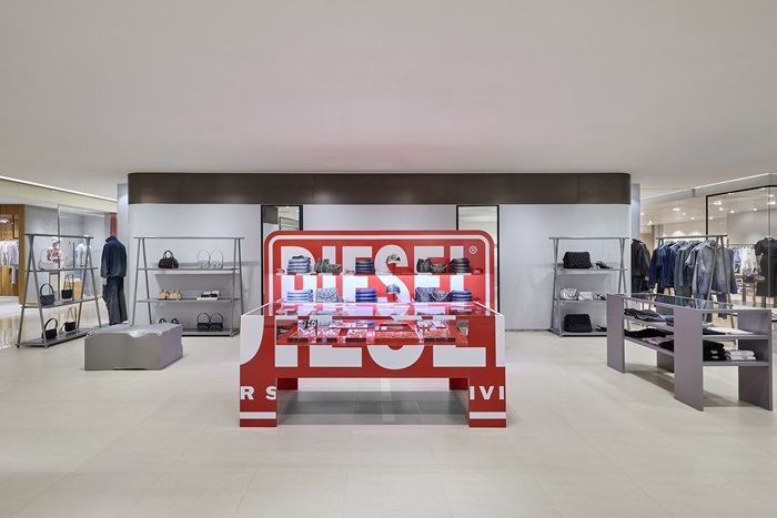 ‘디젤(DIESEL)’이 지난 18일 현대백화점 압구정본점에 팝업스토어를 오픈했다. 약 70㎡ 규모의 팝업스토어는 백화점 3층에 위치하고 있으며, 디젤의 대담한 정체성과 창의성을 고스란히 담아냈다.