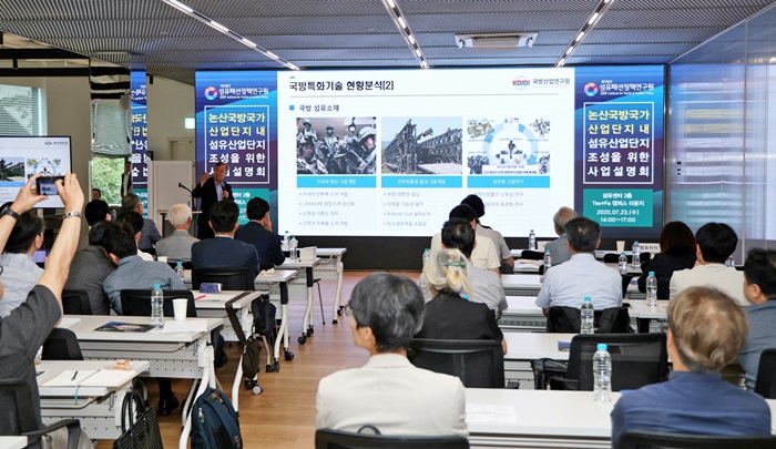 시는 23일 서울 강남구 대치동 섬유센터에서 섬유패션정책연구원, 국방산업연구원과 함께 ‘논산 국방국가산업단지 내 섬유단지 조성을 위한 사업설명회’를 열고, 섬유업종 유치 및 단지 조성 계획을 발표했다.