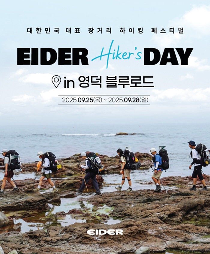 아웃도어 브랜드 ‘아이더’가 오는 9월 영덕 블루로드에서 열리는 대한민국 대표 장거리 하이킹 페스티벌 ‘아이더 하이커스데이(Hiker’s Day) 2025’ 참가자를 모집한다.