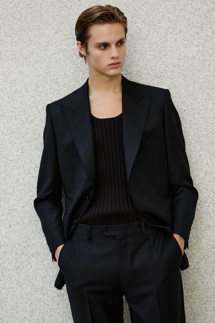 또한, ‘피크드 라펠(Peaked Lapel)’과 ‘체인지 포켓(Change Pocket)’ 등 현대 남성복에서는 쉽게 찾아 보기 힘든 전통적인 슈트의 요소를 접목해 클래식한 멋을 강조했다. 턱시도에 자주 사용되는 ‘피크드 라펠’은 끝이 위로 올라간 재킷 깃으로, 당당한 분위기를 연출하는 것이 특징이다. ‘체인지 포켓’은 과거 동전이나 작은 물건을 넣기 위한 주머니로, 클래식 슈트의 상징처럼 여겨진다.