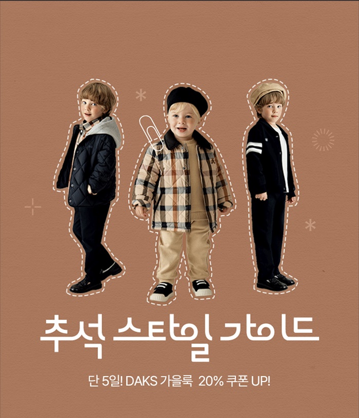 1차 기획전은 15일부터 19일까지 5일간 진행되며, ‘닥스 리틀•베이비’ 제품을 집중 조명한다. 체크 패턴과 차분한 색감을 바탕으로 영국 감성의 클래식한 분위기를 담은 브랜드로, 가족 모임에 어울리는 셔츠•원피스•구두부터 여행에 적합한 맨투맨•후드티까지 다양한 스타일링을 제안한다.