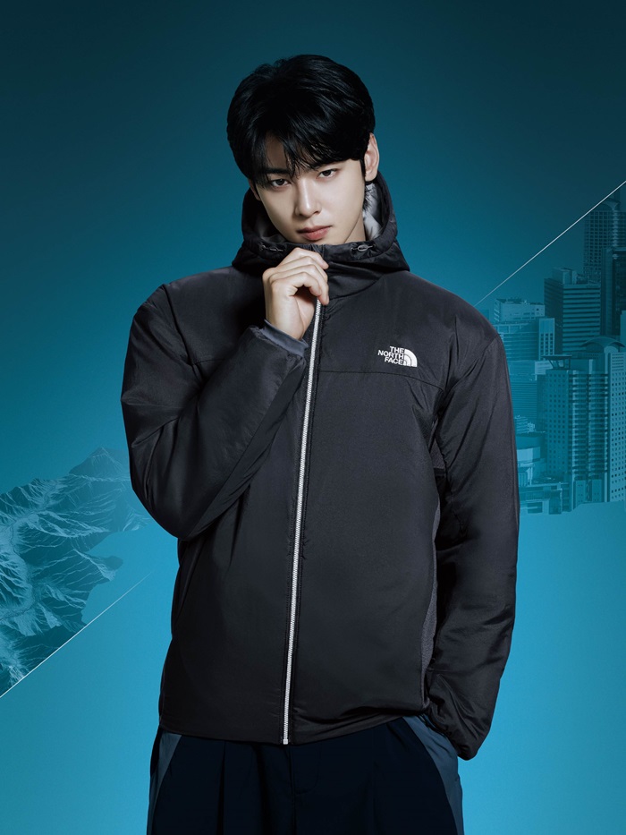 하이브리드 경량 패딩 ‘부베 후디 재킷’을 착장한 ‘노스페이스’ 홍보대사 차은우