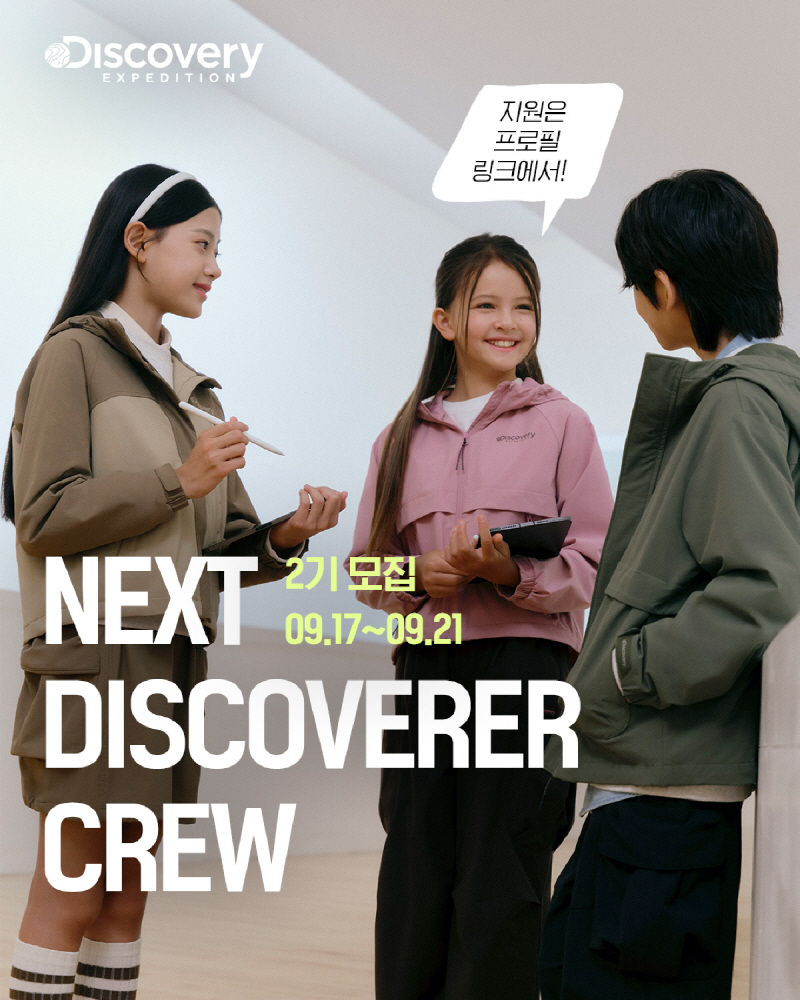 프리미엄 라이프스타일 아웃도어 브랜드 ‘디스커버리 익스페디션’의 디스커버리 키즈가 브랜드의 페르소나 크루 ‘넥스트 디스커버러(Next Discoverer)’ 2기를 모집한다.