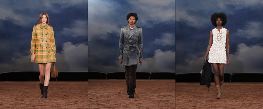 이번 쇼는 런던 켄싱턴 가든의 퍼크스 필드에서 열렸다. 버버리의 시그니처 소재인 개버딘으로 완성된 쇼 텐트는 도시와 자연을 아우르며 브랜드가 강조하는 양면성의 아름다움을 담아냈다. 어스톤 컬러의 런웨이와 좌석은 영국 여름 음악 축제의 활기를 반영한다.