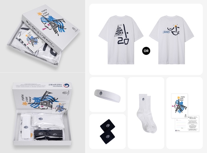 패키지에 포함된 상품은 한글 티셔츠, 헤드밴드, 손목밴드, 러닝삭스, 기념 엽서 5종으로, 러너들을 위한 특별 에디션인만큼 디자인은 물론 기능성과 소재 선택에도 공을 들였다는 게 회사 측 설명이다.