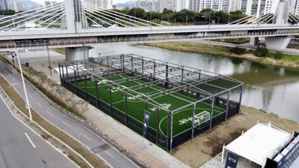 아디다스코리아가 서울시와 ‘서울아 운동하자’ 사회공헌사업의 일환으로 재개장 한 동대문구 휘경2수변공원 풋살장