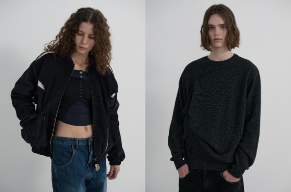 메리노 울 혼방 소재로 부드러운 터치감과 보온성까지 겸비한 ‘드리프트 레이어 메리노 울 버튼 니트’는 사선으로 유연하게 떨어지는 레이어드 디테일과 언밸런스한 길이감으로 감각적인 실루엣을 연출했으며, 비정형 단추 장식으로 포인트를 더했다. 우알롱의 인기 아이템인 ‘커브 벌룬 와이드 데님 팬츠’는 글로시하고 고급스러운 벨벳 원단과 과장된 뒷포켓, 로우 포지션 디테일로 시즌 무드가 느껴지는 매력적인 팬츠로 재해석됐다.