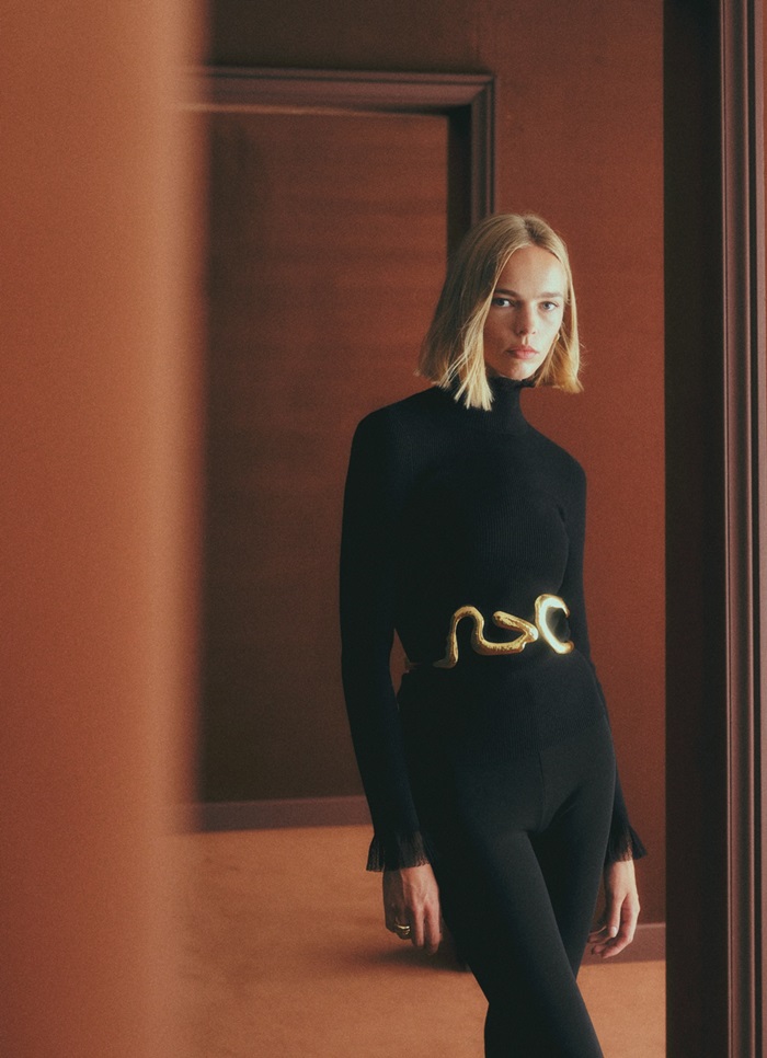 오버 핏 사이즈와 구조적인 실루엣의 코트 라인과 비비드 한 컬러감의 실로 제작된 새로운 니트웨어, 그리고 섬세한 디테일이 돋보이는 셔츠와 벨트, 이어링 등 다양한 액세서리 라인업으로 구성되어 있다.