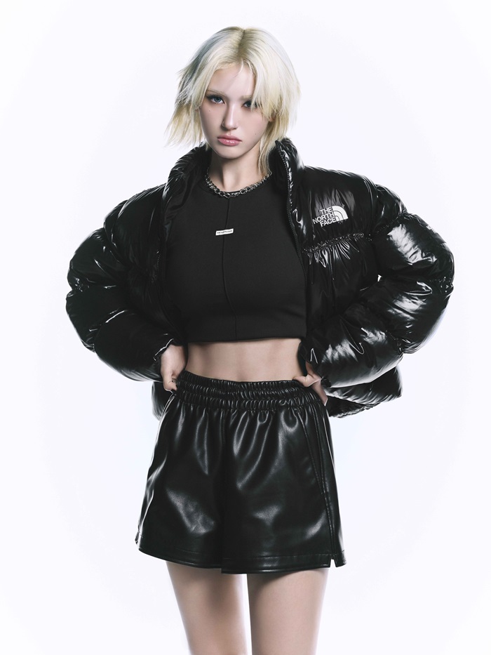 ‘엘라 눕시 다운 재킷’, ‘엘라 쇼츠’ 및 ‘엘라 레그 워머’를 착장한 노스페이스 홍보대사 전소미