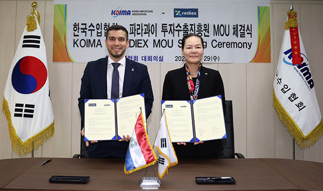 한국수입협회(KOIMA, 회장 윤영미)는 29일 오전 하비에르 비베로스(Javier Viveros) 파라과이 투자수출진흥원(REDIEX) 원장(파라과이 산업부 차관)과 양국 간 교역 확대 및 투자 협력 방안을 논의하고, 업무협력 양해각서(MOU)를 체결했다.