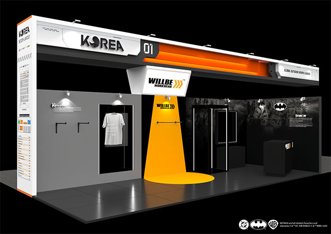 전시 부스에는 K브랜드로서 윌비워크웨어를 확실히 각인시키기 위한 체험 이벤트와 특별 기념품도 마련했다. ‘세이프가드존’에서는 영화 배트맨의 동전 모티프를 차용한 게임을 통해 한국의 오색실 컬러를 활용한 매듭 팔찌를 증정하며, 바이어에게는 최근 K컬쳐 열풍 속 주목 받고 있는 ‘갓’ 디자인의 독특한 볼펜을 선물한다.