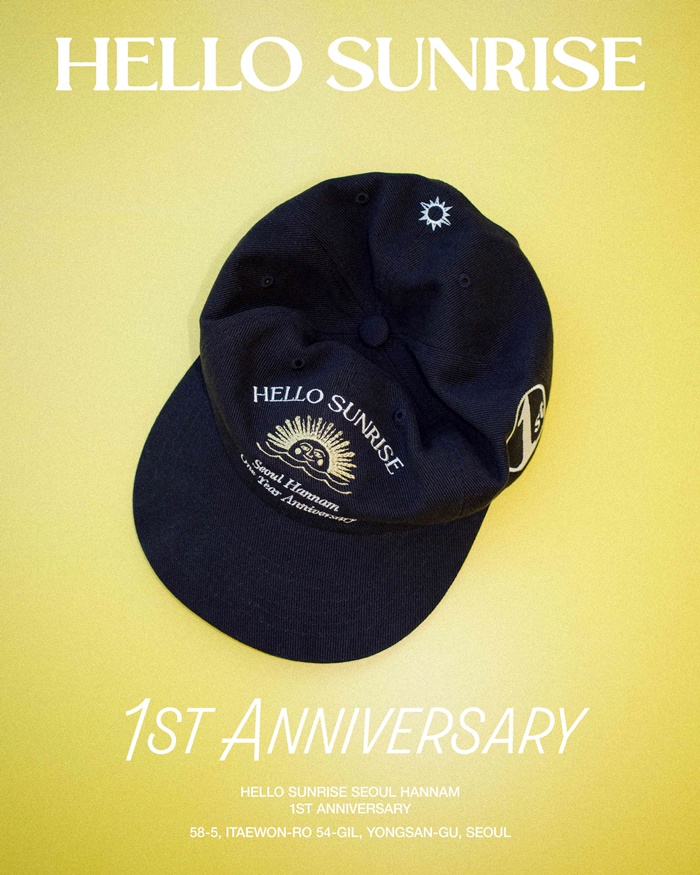 한남 스토어의 첫해를 함께해 준 고객들에게 감사의 마음을 담아 기획된 이번 1주년 기념 캡은 헬로선라이즈의 시그니처인 ‘태양’ 그래픽과 1주년을 상징하는 아트워크를 자수로 표현한 것이 특징이다.