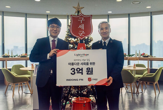 인동에프엔은 이번 기부를 바탕으로 구세군과 함께 취약계층의 생활 안정과 자립을 돕는 ‘IN: HOPE PROJECT’ 캠페인을 시작한다.