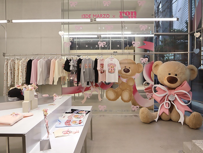 12월 16일부터 28일까지 론론의 한남 플래그십 스토어에서 진행되는 팝업스토어 역시 론론과 13DE MARZO 특유의 사랑스럽고 유니크한 세계관을 경험할 수 있도록 연출했다. 론론의 시그니처 리본으로 장식한 외관은 선물을 열기 전의 설렘을 표현했으며 매장 안쪽에는 대형 ’MARZO BEAR’ 포토존을 마련해 방문객들이 함께 사진을 찍으며 즐거운 추억을 남길 수 있는 공간을 구성했다.