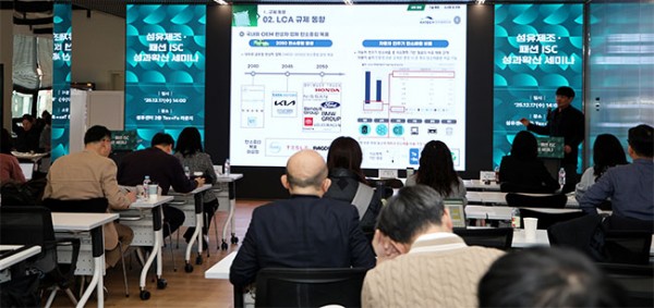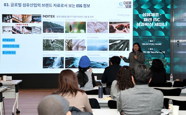 한국섬유산업연합회(회장 최병오, 이하 섬산련)는 지난 12월 17일(수) 섬유센터 2층 Tex+Fa 라운지에서 산업계 및 학계 관계자 80여 명이 참석한 가운데, 「섬유제조·패션 ISC 성과확산 세미나」를 성황리 개최했다.