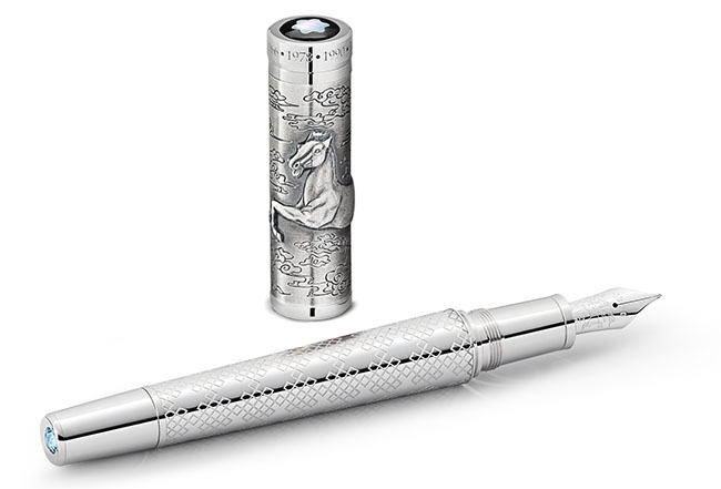 솔리드 Au 750 골드 닙에는 더 높은 차원으로의 여정을 상징하는 천마 모티프가 장식돼 있으며, 캡탑에는 마더 오브 펄 소재의 몽블랑 엠블럼이 세팅되어 있다.
