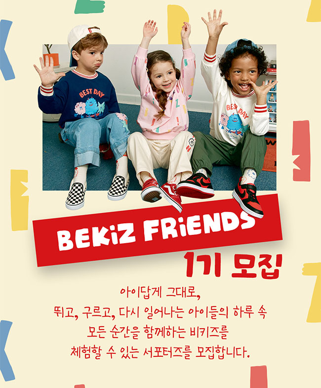 해피랜드코퍼레이션(대표 임남희)이 전개하는 키즈 브랜드 '비키즈(BEKiZ)'가 공식 서포터즈 ‘비키즈 프렌즈(BEKiZ FRiENDS)’를 모집한다. ‘비키즈 프렌즈’는 비키즈의 브랜드 메시지인 ‘아이답게, 그대로’를 바탕으로 뛰고, 구르고, 다시 일어나는 아이들의 일상을 실제 착용 경험을 통해 함께 기록해 나가는 서포터즈 프로그램이다.