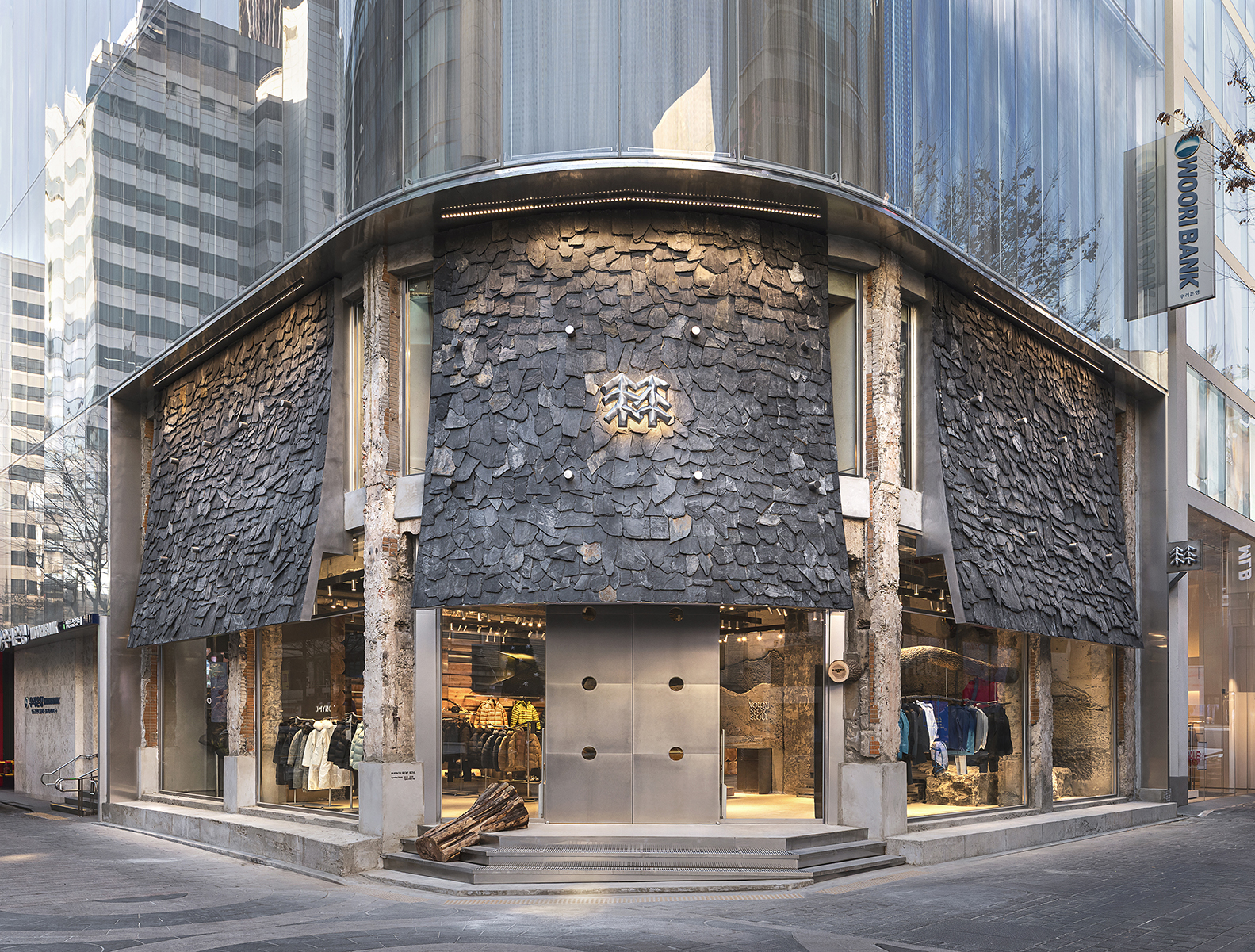 외관은 코너 입지의 특성을 살린 전면 파사드를 적용해 시인성과 주목도를 높였고, 내부 집기는 생목과 금속 소재를 함께 사용해 서로 다른 재질이 균형을 이루도록 설계됐다. 원목과 골재가 드러나는 콘크리트 질감을 활용한 절제된 마감을 통해 자연과 연결된 코오롱스포츠만의 해석이 담긴 공간을 완성했다.