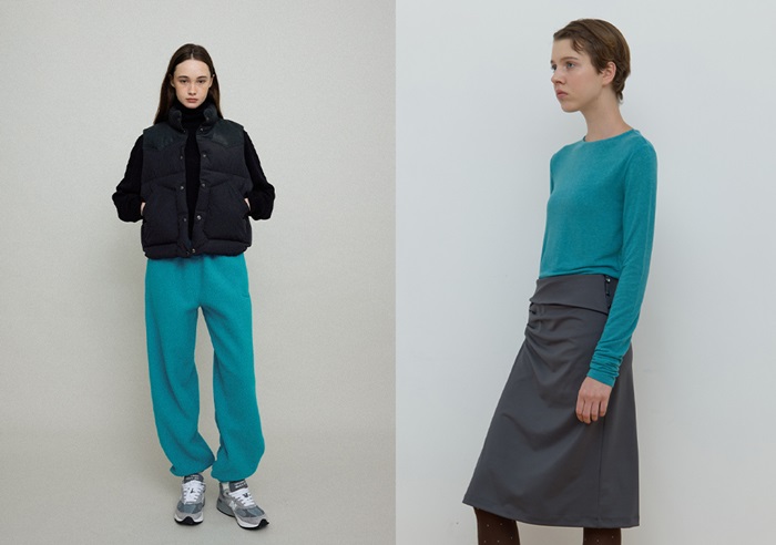 실제 29CM가 1월 1일부터 8일까지 약 일주일간 판매 데이터를 분석한 결과, 청록 계열인 ‘틸 블루’ 색상 상품의 거래액이 큰 폭으로 증가했다. 특히 겨울 아우터 안에 포인트를 줄 수 있는 니트 상의와 팬츠 중심으로 관련 색상 아이템 수요가 집중되고 있다.
